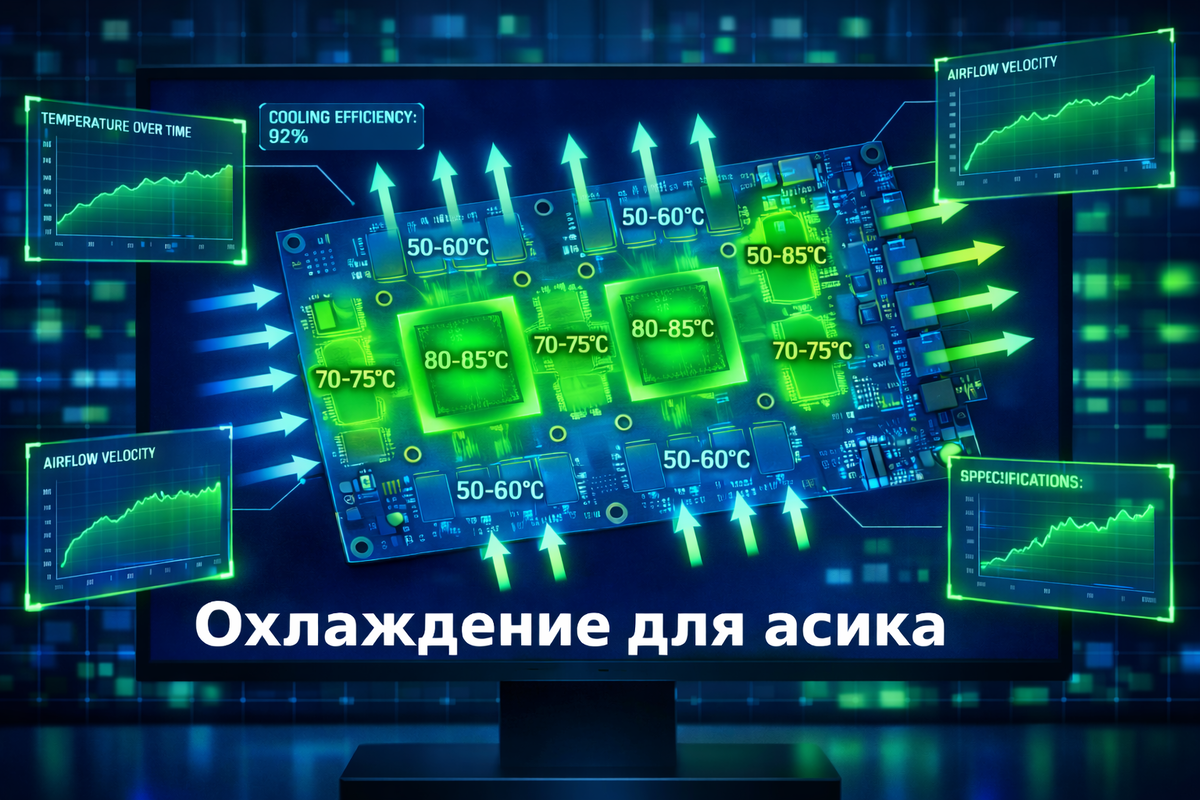 Охлаждение ASIC-майнеров — не просто техническая деталь, а ключевой фактор стабильности всего майнинга. Современные чипы выделяют от 3 до 6 кВт тепла на устройство. Без эффективного отвода температура чипов быстро достигает критических значений, и начинаются проблемы.