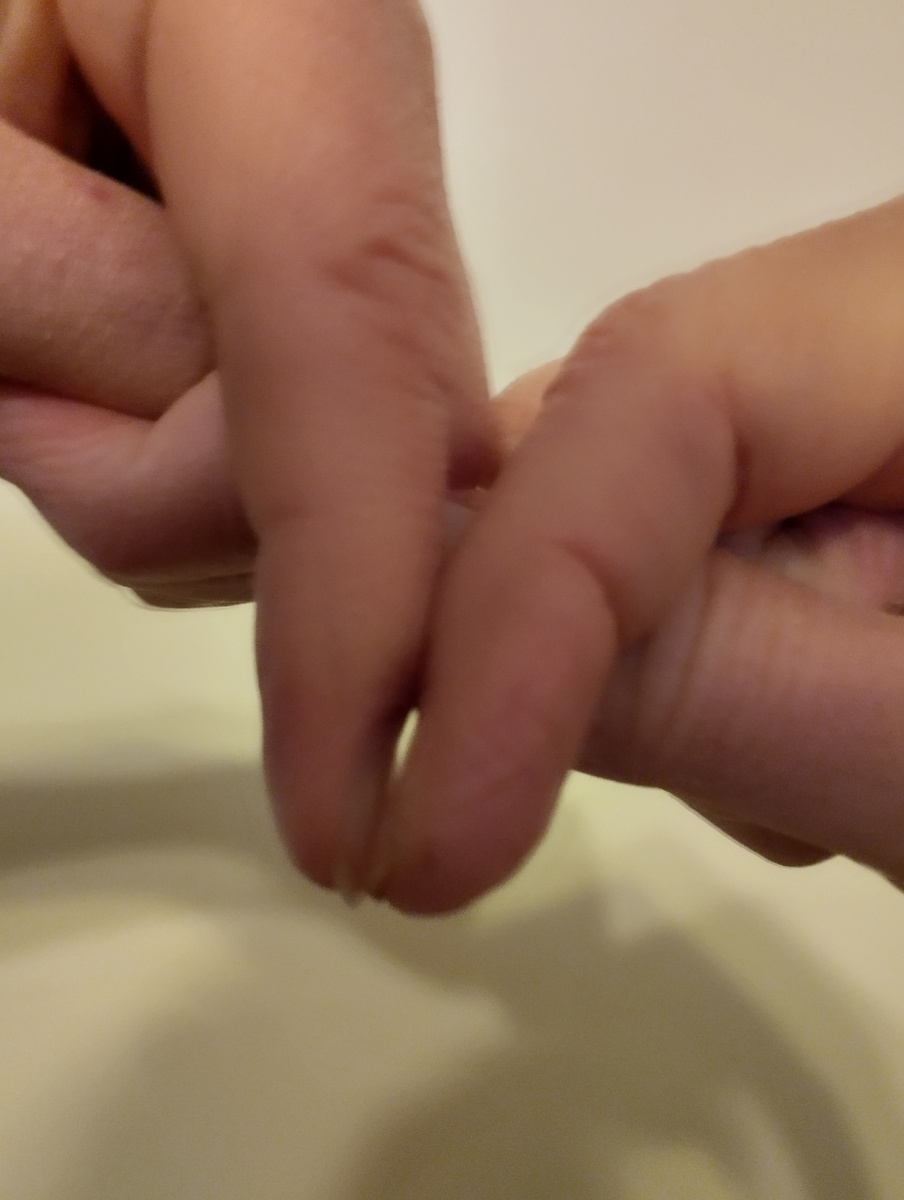 1. Соедините две первые фаланги указательных (или больших) пальцев рук так, чтобы ногти соприкасались по всей длине.