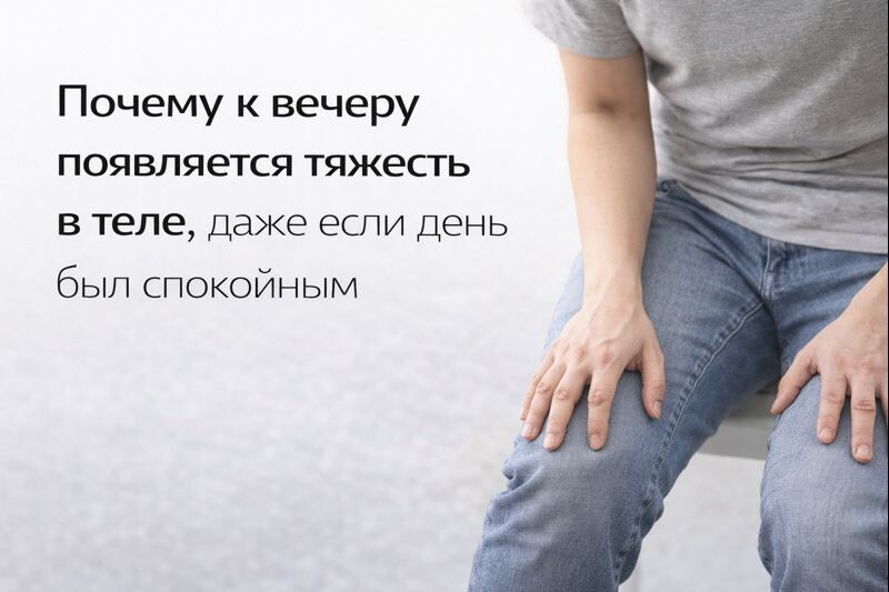 Иногда день проходит спокойно: без долгих прогулок, физической нагрузки и особого напряжения. Но ближе к вечеру появляется странное ощущение — тело словно «налилось», движения становятся медленнее, хочется просто лечь и ничего не делать. Часто это списывают на усталость или возраст. Но причина не всегда в количестве дел. Мы привыкли связывать тяжесть в теле с нагрузкой: много ходили, долго стояли, что-то таскали. Но организм может уставать и по-другому — незаметно. Например, когда: В таких случаях тело устаёт не от усилий, а от отсутствия нормального движения. Когда мышцы долго находятся в одном и том же состоянии, кровообращение работает менее эффективно. Это не опасно само по себе, но к вечеру может давать ощущение тяжести, «ватности» или распирания. При этом человек может быть уверен, что почти не нагружался. Днём организм ещё справляется с компенсацией. Но к вечеру ресурсы постепенно снижаются, и накопленный дискомфорт становится заметнее. Поэтому ощущения часто появляются не сра