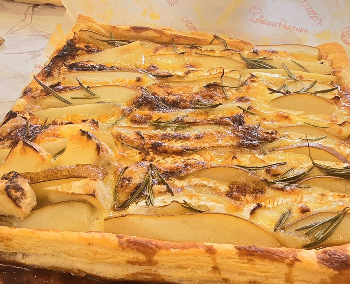 Пикантный , ароматный французский Тарт с грушей, кемамбером, бри, медом и розмарином для Гурманов. Понравится любителям сыра и необычных, изысканных вкусов.