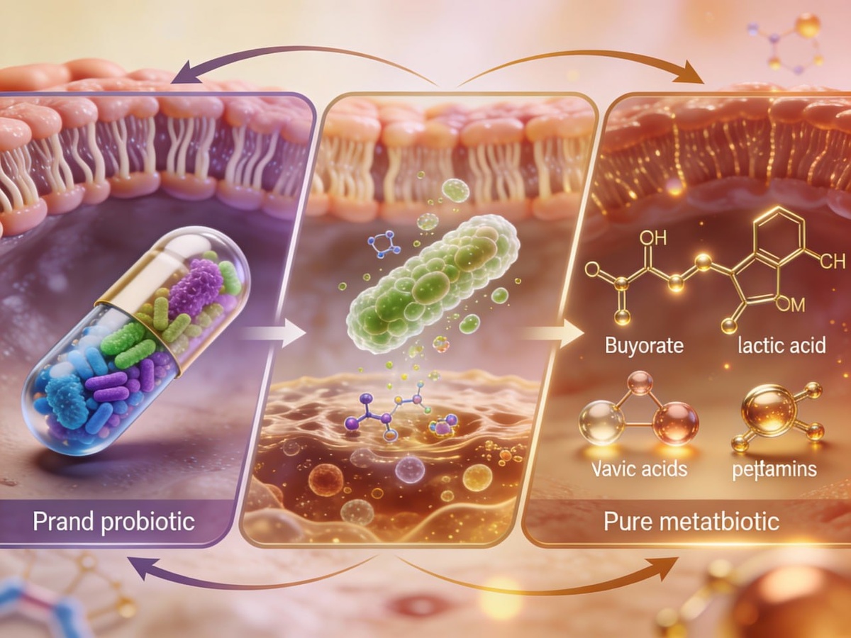 🚀 Что, если вам не нужны живые бактерии, а только их метаболиты? Добро пожаловать в эру метабиотиков (постбиотиков) - препаратов нового поколения. Что такое метабиотики: Это продукты метаболизма полезных бактерий: короткоцепочечные жирные кислоты (КЦЖК), органические кислоты, витамины, пептиды, бактериоцины. Преимущества перед пробиотиками: ✅ Находятся в активной форме - начинают работать сразу (не нужно ждать, пока бактерии "поедят") ✅ Высокая биодоступность: 95-97% доходят до толстой кишки в неизменном виде ✅ Не вступают в конфликт с собственной микробиотой ✅ Не боятся антибиотиков - можно и нужно принимать одновременно ✅ Не передают гены устойчивости к антибиотикам Механизм действия метабиотиков: 🔹 Восстанавливают кишечный барьер - бутират "запечатывает" плотные контакты между клетками, предотвращая синдром "дырявого кишечника" 🔹 Противовоспалительное действие - подавляют провоспалительные цитокины 🔹 Подавляют патогенную флору - создают неблагоприятную среду для роста вредн
