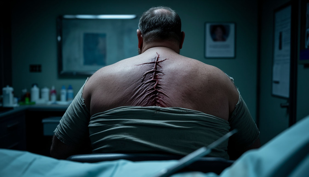 Я с ужасом смотрел, как обвисшая кожа на его боках начинает натягиваться. Складки на животе разглаживались, исчезая на глазах. Грудная клетка расширялась с влажным хрустом, расправляя плечи.