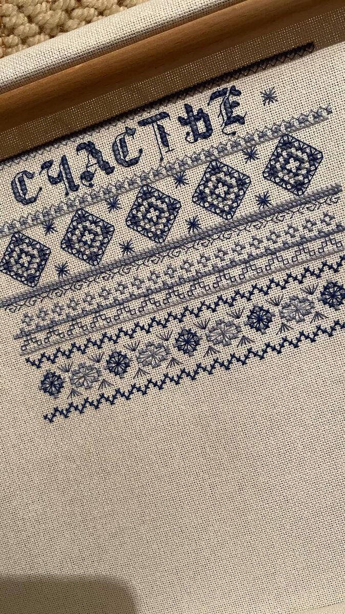 Вышиваю Рождественский сапожок от Panna. Много шовчиков, узоров и всяческого удовольствия и релакса. В наборе равномерка Линда, что делает работу более изысканной. Переплетение узоров напоминают узоры на зимних окнах. Работу закрепила в станок.