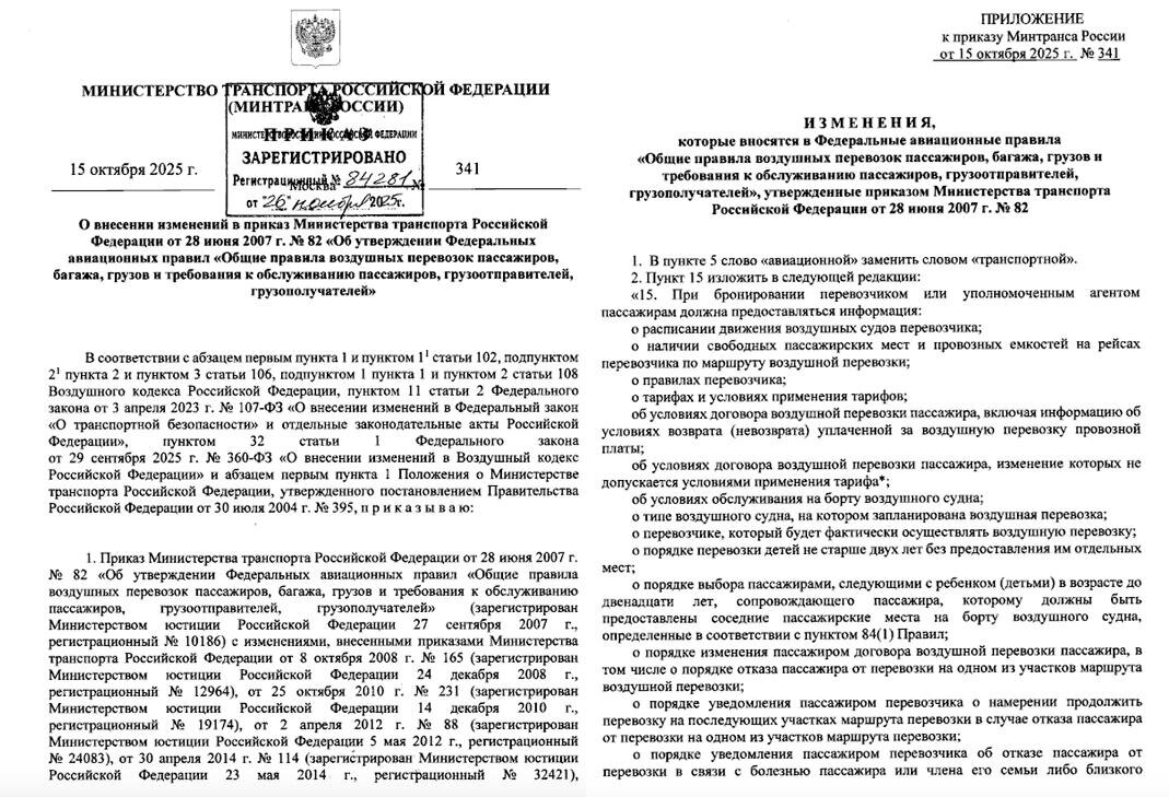 Важные уточнения, которые реально упростят жизнь пассажирам. Что нового: 〰️ Электронный посадочный талон официально приравнивается к бумажному — можно летать без распечаток. 〰️ Авиакомпании обязаны заранее и понятно информировать пассажиров об условиях перелёта, обмене билетов и возврате средств, в том числе при болезни и других вынужденных причинах. 〰️ Семьи с детьми: ребёнок до 12 лет и сопровождающий должны размещаться рядом без доплаты. 〰️ Детские устройства (коляски и др.) можно провозить как бесплатную ручную кладь, даже если ребёнок не летит этим рейсом. 〰️ Вводится чёткое понятие «вынужденного отказа» — задержка рейса более 30 минут даёт право требовать возврат денег. 〰️ Обязанности авиакомпаний при задержках теперь прописаны чётко: • задержка от 2 часов — вода • от 4 часов — питание • при более длительных задержках — размещение и другие обязательные услуги 📌 Ничего революционного, но теперь эти правила закреплены официально, а не зависят от «доброй воли» авиакомпаний.