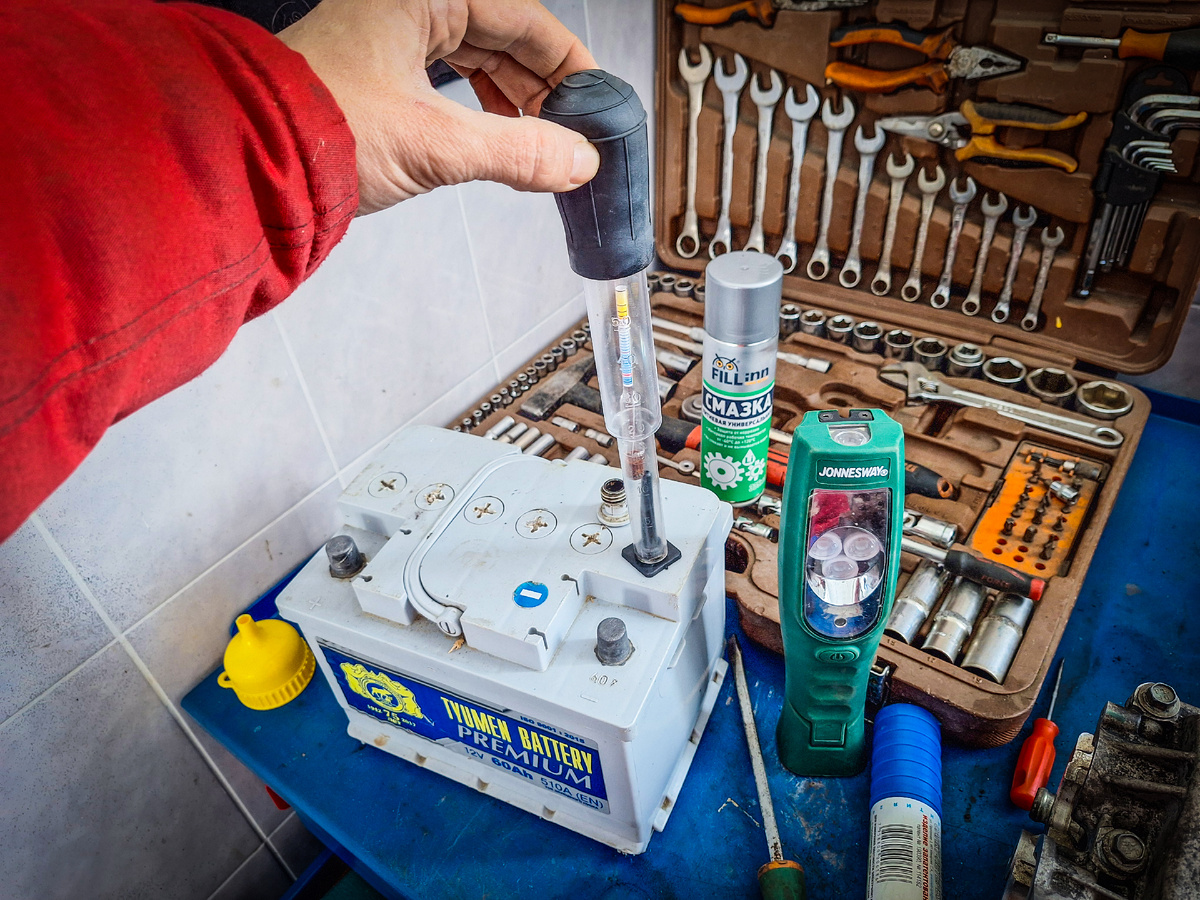 - Контроль состояния. Можно измерить плотность электролита ареометром, увидеть, насколько батарея «здоровая» или же наоборот "больная".