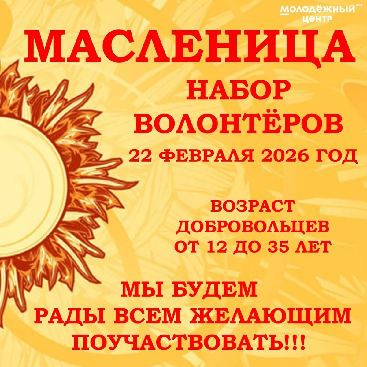 » В этом году народные гуляния пройдут 22 февраля в селе Сухобузимское. Молодёжный центр уже объявил набор волонтёров для участия в одном из самых ярких праздников года! Если вы: ✅ энергичны, ✅ ответственны, ✅ хотите помочь и получить незабываемый опыт, вам точно найдётся место в команде! Требования простые — возраст от 12 до 35 лет. 📩 Заявки принимаются через сообщения в VK: vk.com/m07052996sha — Мария, специалист Молодёжного центра. В заявке нужно указать: возраст и пункт проживания (это поможет правильно распределить задачи). Присоединяйтесь!