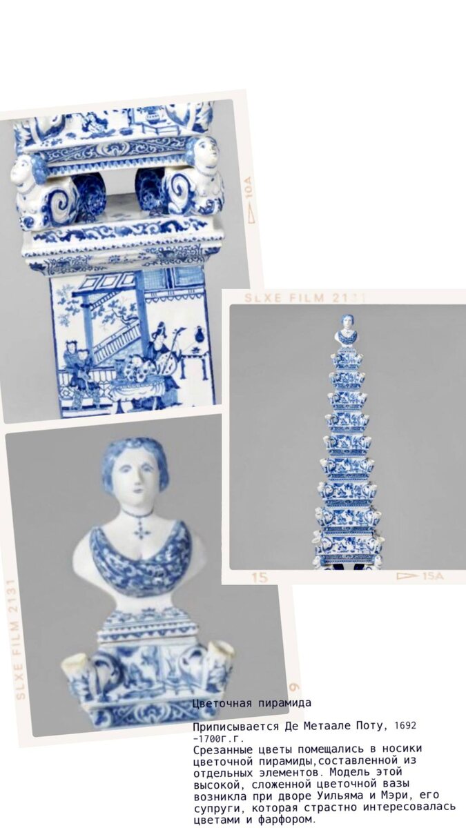 В Рейксмузее (Амстердам) хранится одна из крупнейших в мире коллекций дельфтского фарфора — около 1 600 предметов, включая тарелки, блюда, кувшины, декоративные элементы и плитки, датированные XVI–XVIII веками. Основу собрания дельфтского фарфора в Рейксмузее составила коллекция, собранная Джоном Фрэнсисом Лаудоном — сыном шотландского военно-морского офицера. В период 1869–1877 годов он собрал более 450 предметов дельфтского фарфора, включая как традиционные «синие» изделия, так и редкие полихромные образцы XVII–XVIII веков.После его смерти племянники передали всю коллекцию музею. Одни из самых узнаваемых объектов коллекции — многоярусные цветочные пирамиды (bloempiramides), созданные в конце XVII – начале XVIII века, в том числе на мануфактуре De Grieksche A. Большинство таких пирамид редко использовались по назначению.Они служили статусными интерьерными объектами,демонстрируя богатство владельца и мастерство керамистов. В Рейксмузее хранятся одни из крупнейших и наиболее сложных