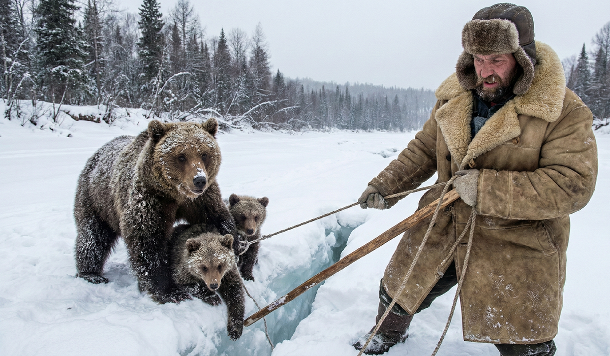 Со второй попытки петля легла идеально — рядом с лапой того медвежонка, что был ближе. Малыш, инстинктивно ища опору, начал бить лапами и запутался в веревке. Дмитрий выждал момент, когда петля затянулась под мышками зверя, и плавно, но сильно потянул.