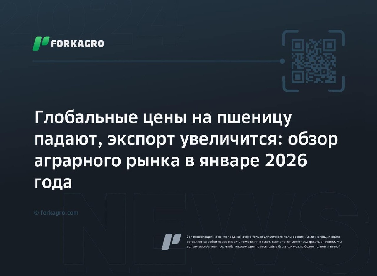 Глобальные цены на пшеницу падают, экспорт увеличится: обзор аграрного рынка в январе 2026 года