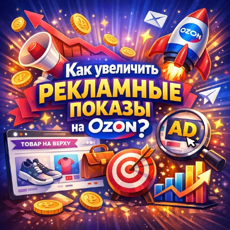 ? 📌Почему товар не видно? Простой гид по увеличению показов на Oзон Запускаете рекламу, а показов кот наплакал? Это частая боль, но проблема почти всегда решаема. Чтобы товар увидели, нужно работать в двух направлениях: грамотно настраивать рекламные кампании и делать карточку максимально привлекательной для алгоритмов Ozon. Главное правило: Ozon не будет тратить свои рекламные места (показы) на товары, которые, по его мнению, не купят. Алгоритмы оценивают ставки рекламодателя, но также анализируют качество карточки и историю взаимодействий с ней покупателей. 🎯 1. Проверьте настройки рекламы Основная причина низких показов часто кроется в параметрах кампании. - Низкий бюджет или ставка. Если ставка слишком мала на фоне конкурентов, система просто не сможет выиграть для вас рекламные места. Ozon показывает "конкурентную ставку" — ориентируйтесь на нее. - Слишком много товаров в одной кампании. Не добавляйте весь ассортимент. Лучше сфокусироваться на нескольких перспективных пози