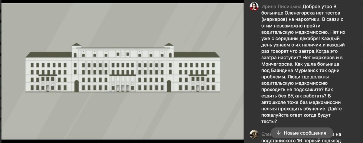 Вот, например: В больнице Оленегорска нет тестов (маркеров) на наркотики. В связи с этим невозможно пройти водительскую медкомиссию. Нет их уже с середины декабря! Каждый день узнаем о их наличии,и каждый раз говорят что завтра.Когда это завтра наступит? Нет маркеров и в Мончегорске. Как ушла больница под Баяндина Мурманск так одни проблемы. Люди где должны водительскую медкомиссию проходить не подскажите? Как ездить без ВУ, как работать? В автошколе тоже без медкомиссии нельзя проходить обучение. Дайте, пожалуйста ответ – когда будут тесты? ❄ «Арктический Обозреватель»