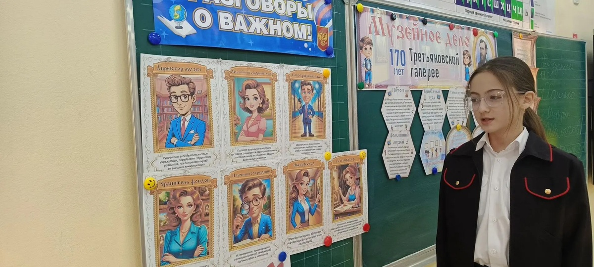 ». Он приурочен к 170-летию Государственной Третьяковской галереи и посвящен музейному делу. Со школьниками поговорили о том, какую роль музеи играют в сохранении и приумножении материального и нематериального наследия России. На примере Третьяковской галереи и других музеев учащиеся увидели, как специалисты аккумулируют исторический опыт, эмоции и впечатления прошлых поколений. Урок прошёл в формате познавательной беседы с интерактивными элементами. #СОШ24_Новороссисйк #НавигаторДетства93 #ДвижениеПервых #Росдетцентр #РазговорыОВажном