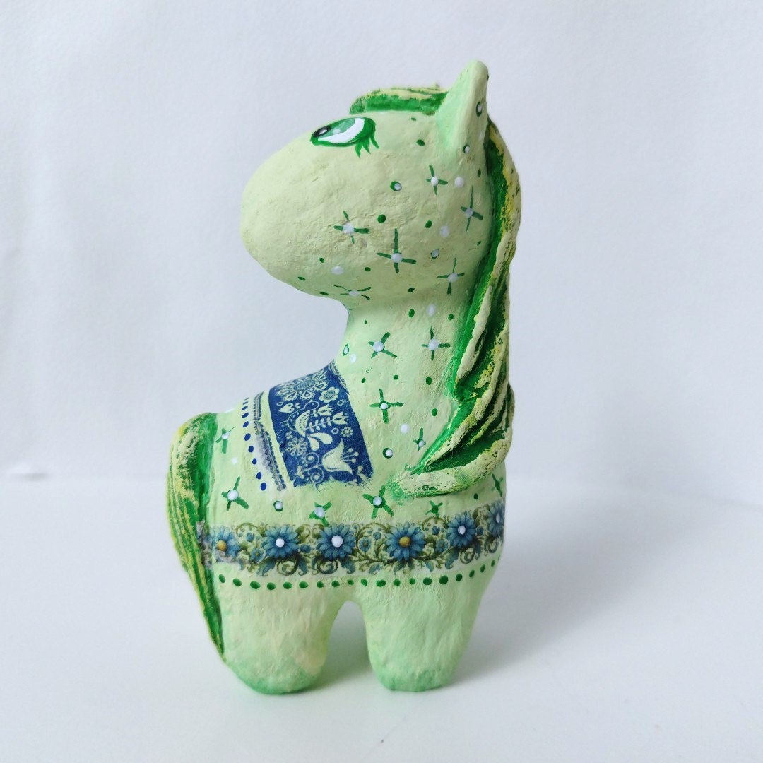 Светло-салатовая лошадка завершает керамический табун моих лошадок. К моменту выпуска этой публикации все лошадки нашли своих хозяев.