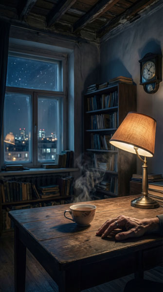 Выдох зазвездный окно засурьмил заполуночной досадой.