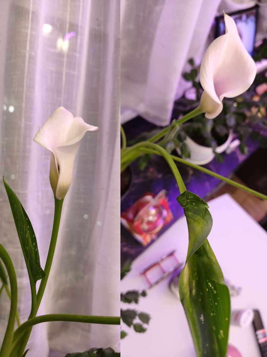 Пока нас дома не было, у меня каллы расцвели. Правда, как оказалось, они совсем другого цвета. Я заказывала оранжевые, а выросло белое. Эх ))