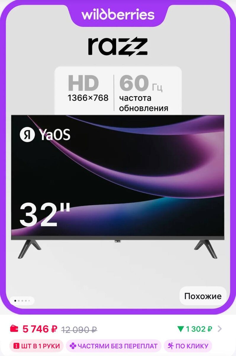 😲😦🫨😪RAZZ Телевизор 32 дюйма HH32HSY25F ОС YaOS Smart, WiFi