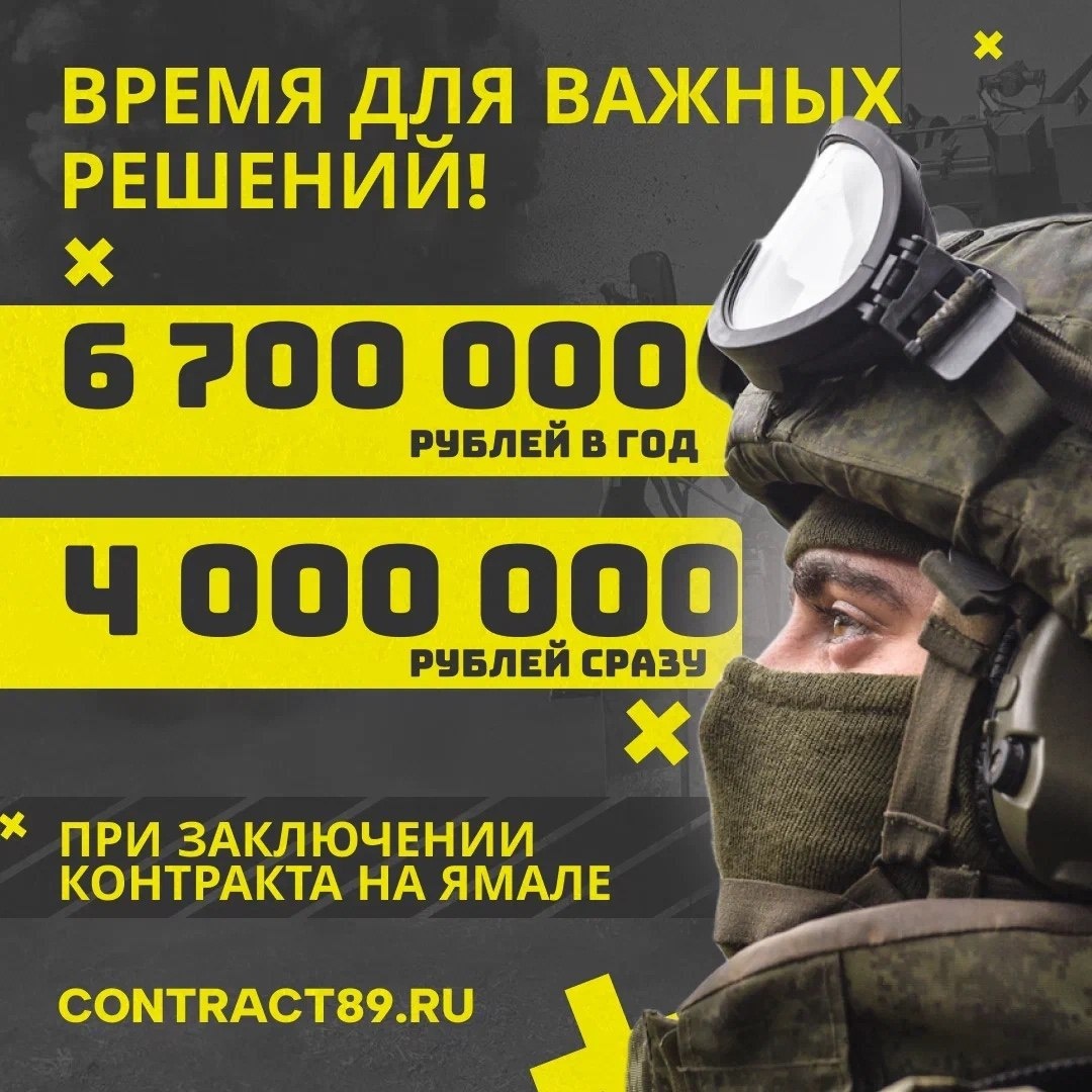 Пора действовать. Настоящие мужчины не ищут оправданий - они берут ответственность за свою жизнь, семью и страну. Служба по контракту в ВС РФ - это: ✔️6 700 000 ₽ в год ✔️4 000 000 ₽ сразу на руки ✔️от 225 000 ₽ в месяц в зоне СВО ✔️полная поддержка и гарантии для семьи Все условия здесь: https://contract89.ru