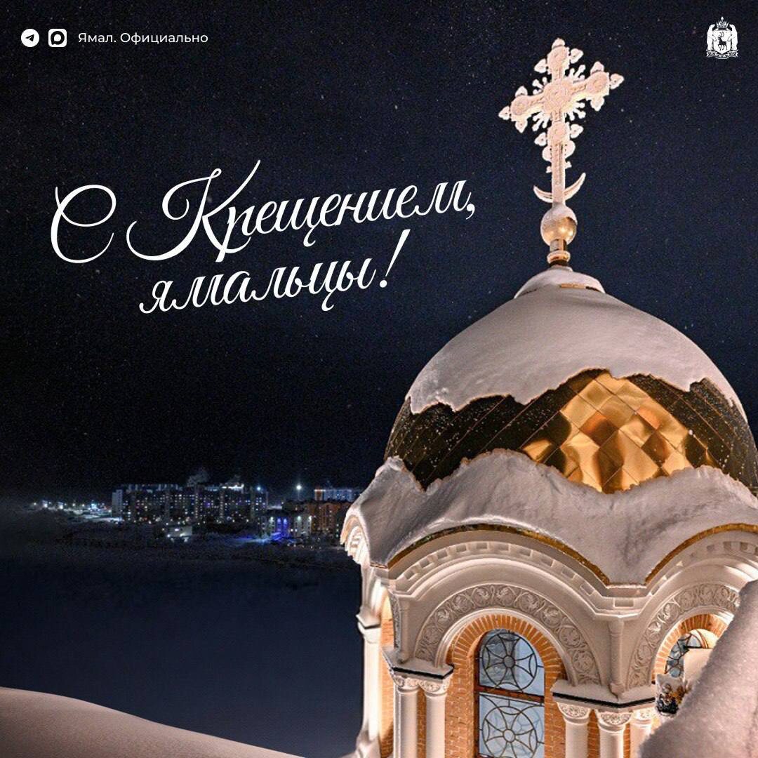 💫 Пусть Крещение Господне наполнит души ямальцев светом, миром и гармонией. — Дорогие земляки! От всей души поздравляю вас с Крещением Господним. Этот праздник — один из самых почитаемых в нашей стране. В этот день мы говорим о духовном очищении и надежде на лучшее. Для Ямала традиции православия всегда были опорой, помогали осваивать этот суровый край и жить в гармонии. В этот светлый день я желаю каждому из вас крепости духа. Пусть крещенская вода станет символом обновления, даст силы для новых свершений. Мира, благополучия и бодрости духа вам и вашим близким, — сказал Дмитрий Артюхов. ℹ️ Сегодня многие верующие ямальцы планируют окунуться в ледяные купели. Список специально оборудованных мест в регионе здесь. Перед омовением обязательно ознакомьтесь с правилами безопасного купания в проруби. 📲 ЯМАЛ. Официально | Подписывайтесь на нас в MAX