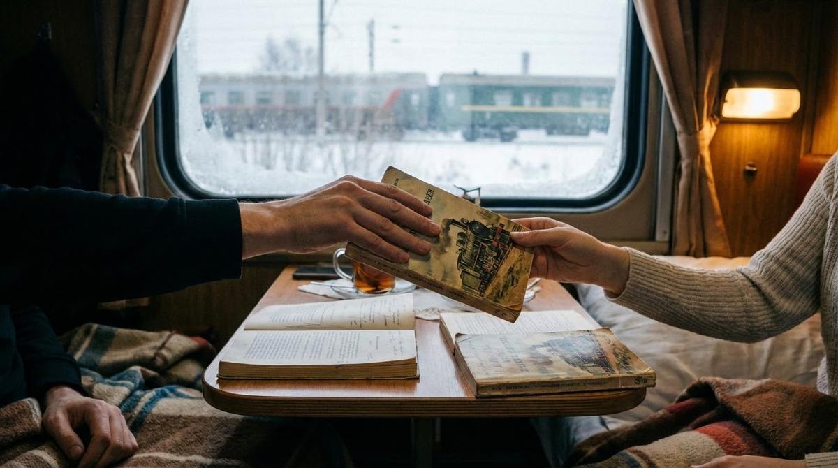 Я достала из сумки свой экземпляр – такой же потрёпанный, только корешок выгорел иначе, в рыжину, – и положила на столик. Не специально. Просто хотела дочитать в дороге.