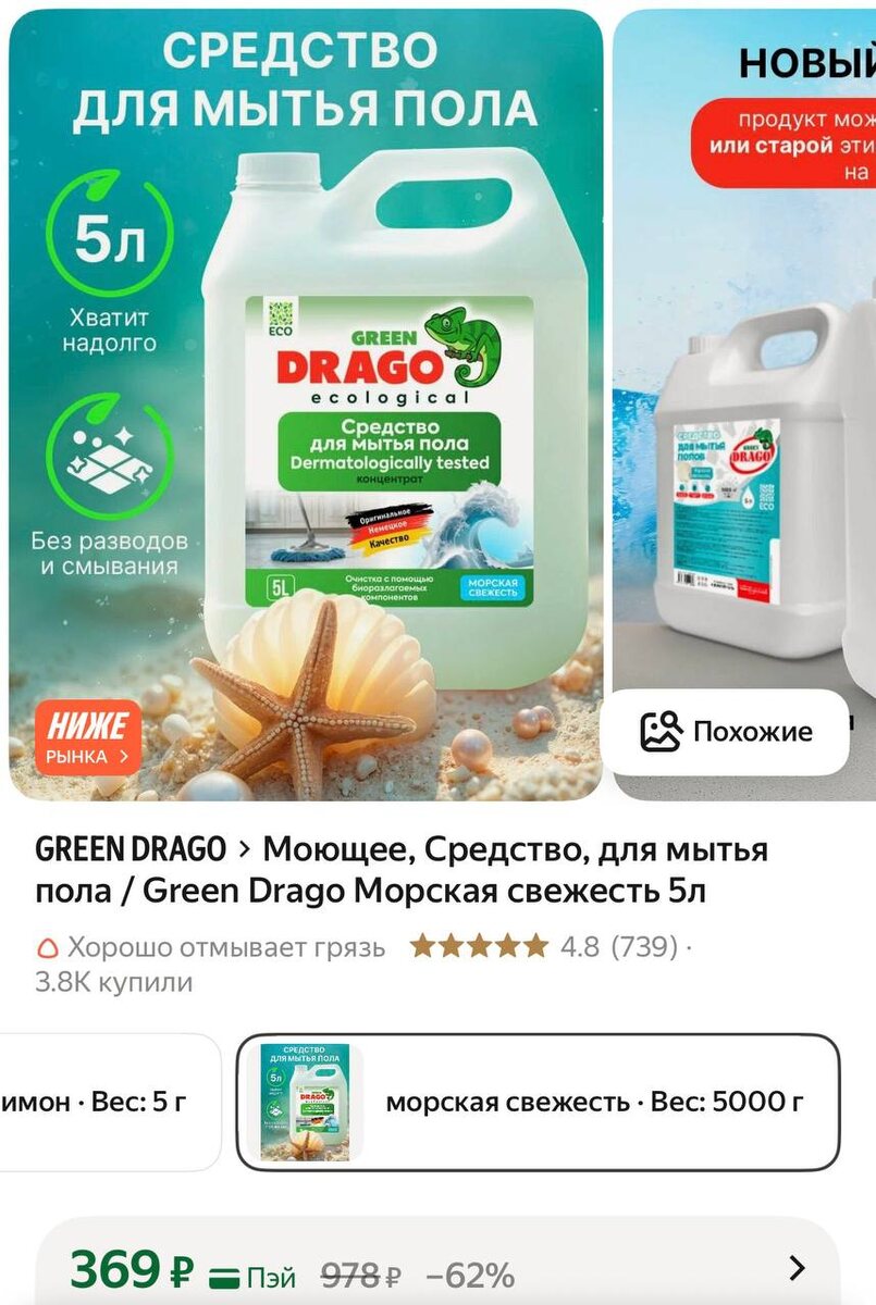 😔😪🤐Моющее, Средство, для мытья пола / Green Drago Морская свежесть 5л