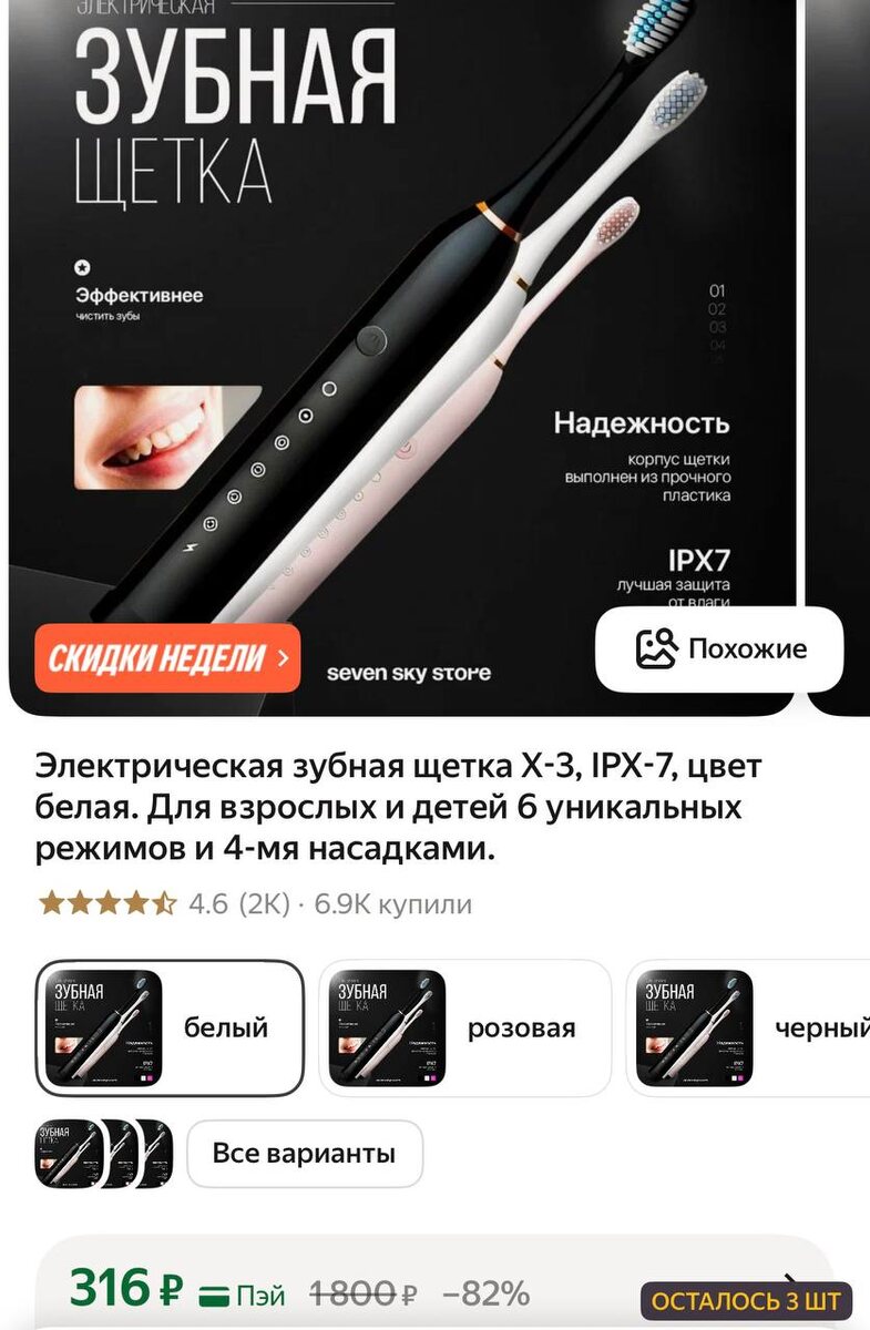 Для взрослых и детей 6 уникальных режимов и 4-мя насадками. https://market.yandex.ru/cc/8Zarty 💛 JANU55-AF — скидка 100₽ на один любой заказ от 5000₽ ✅ Канал по скидкам 🔣 Бот с промокодами
