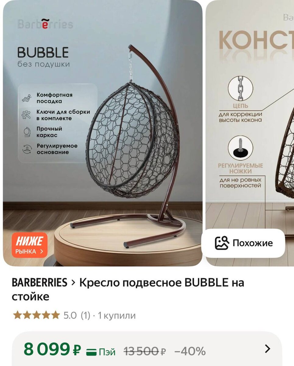 😴😀🤐🤐Кресло подвесное BUBBLE на стойке