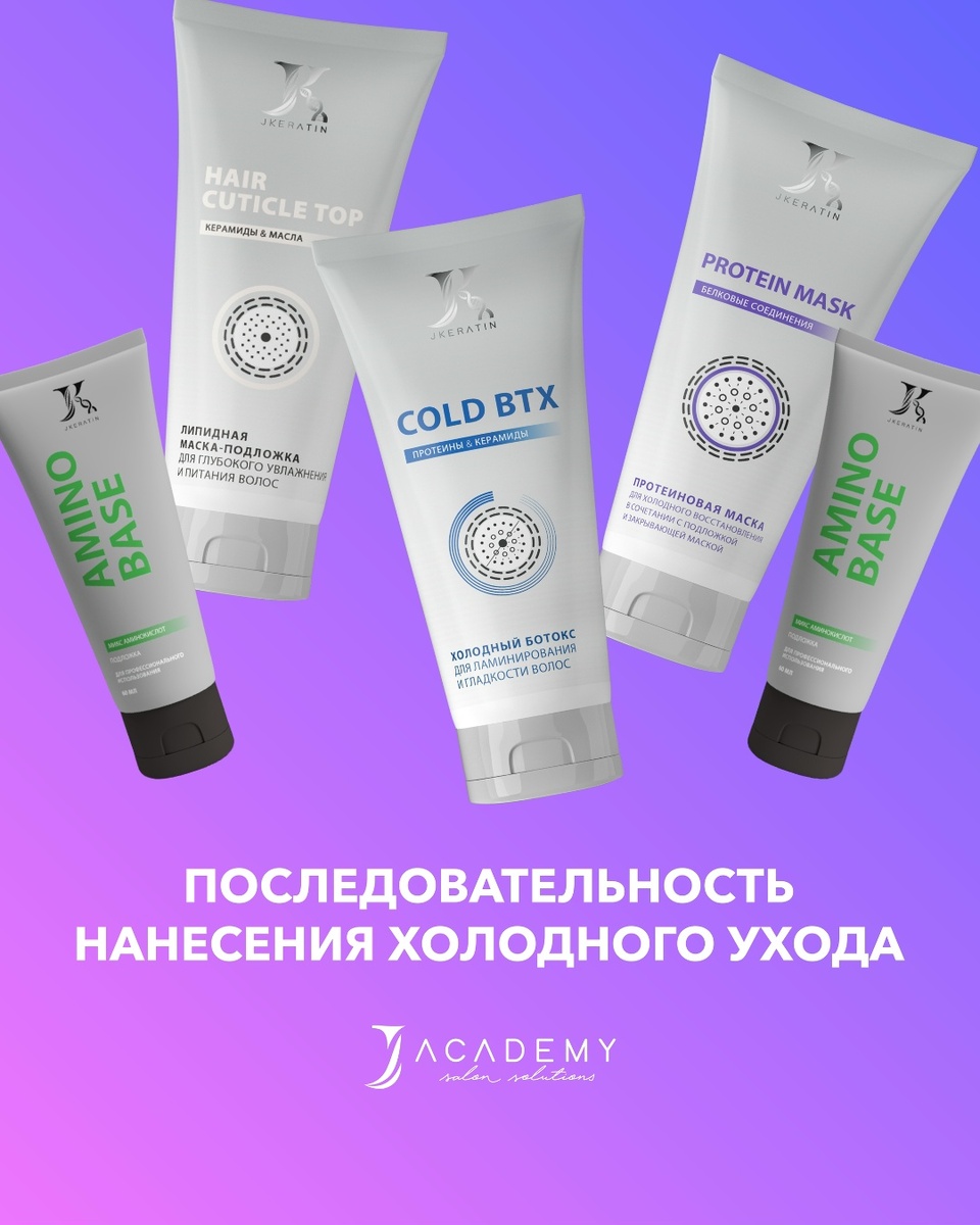 Всё зависит от того, какой эффект хотите получить. Protein Mask создает эффект плотных волос за счёт обогащённого протеинами состава и возможности создать плёнку на волосах. Hair Cuticle Top — липидная маска-подложка с керамидами, маслами и аминокислотами. Обволакивает кутикулу волоса и восстанавливает липидный слой. - Её можно наносить перед процедурой выпрямления или после неё. А можно пропустить этот шаг и в конце процедуры нанести холодный ботокс Cold BTX, если липидная маска закончилась. Cold BTX — холодный ботокс для ламинировани