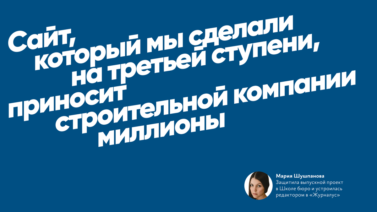 «Сайт, который мы сделали на третьей ступени, приносит строительной компании миллионы», — Мария Шушпанова, выпускница Школы бюро и редактор