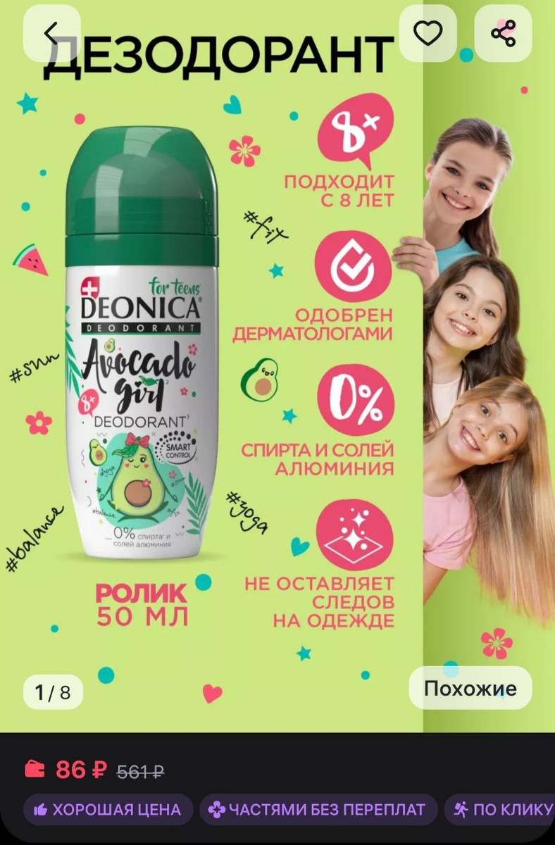 π’ΠΠ΅ΡΡΠΊΠΈΠΉ Π΄Π΅Π·ΠΎΠ΄ΠΎΡΠ°Π½Ρ Π΄Π»Ρ Π΄Π΅Π²ΠΎΡΠ΅ΠΊ ΠΏΠΎΠ΄ΡΠΎΡΡΠΊΠΎΠ² ΡΠ°ΡΠΈΠΊΠΎΠ²ΡΠΉ 50 ΠΌΠ» DEONICA - 86Ρ