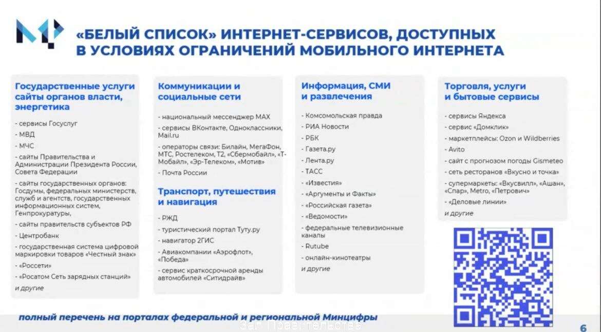 📲 «Белый список» интернет-сервисов, доступных при ограничениях связи