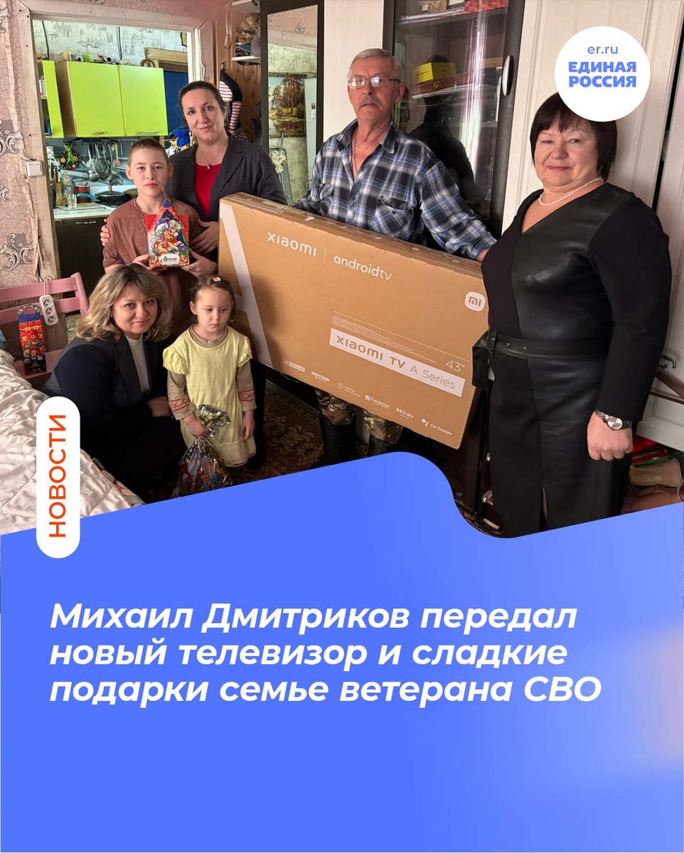 Леоновым встретился за чашкой чая с участниками специальной военной операции. За помощью в приобретении большого телевизора для своей семьи к народному избраннику обратился один из ветеранов СВО – многодетный отец, проживающий в селе Мятлево. Мужчина недавно вернулся с фронта. Он в одиночку занимается воспитанием детей, поэтому средств на покупку нового телевизора взамен сломавшегося, у него не было. Михаил Дмитриков пообещал помочь. Накануне депутат передал телевизор и сладкие подарки детям. - Теперь большой экран есть в доме у человека, который защищал нашу Родину и выполнил свой воинский долг до конца, - отметил Михаил Дмитриков. – Сейчас он выполняет отцовский долг в своей семье – и это также достойно уважения. 💙ВК|📝ДЗЕН