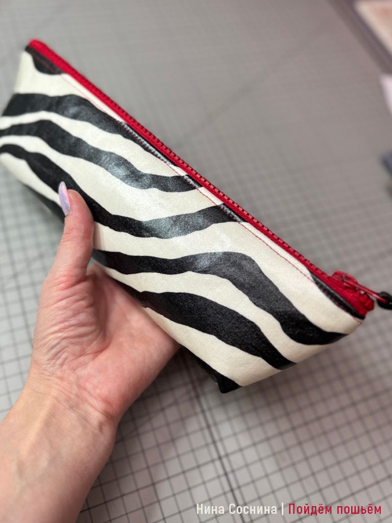 Стильная малышка-косметичка - для косметики и не только. Подойдёт для самых необходимых вещей, которые удобно взять с собой в дорогу и на работу. Я люблю контрастные молнии: красная молния здесь будто сама напросилась и у меня всегда есть такие в запасе.