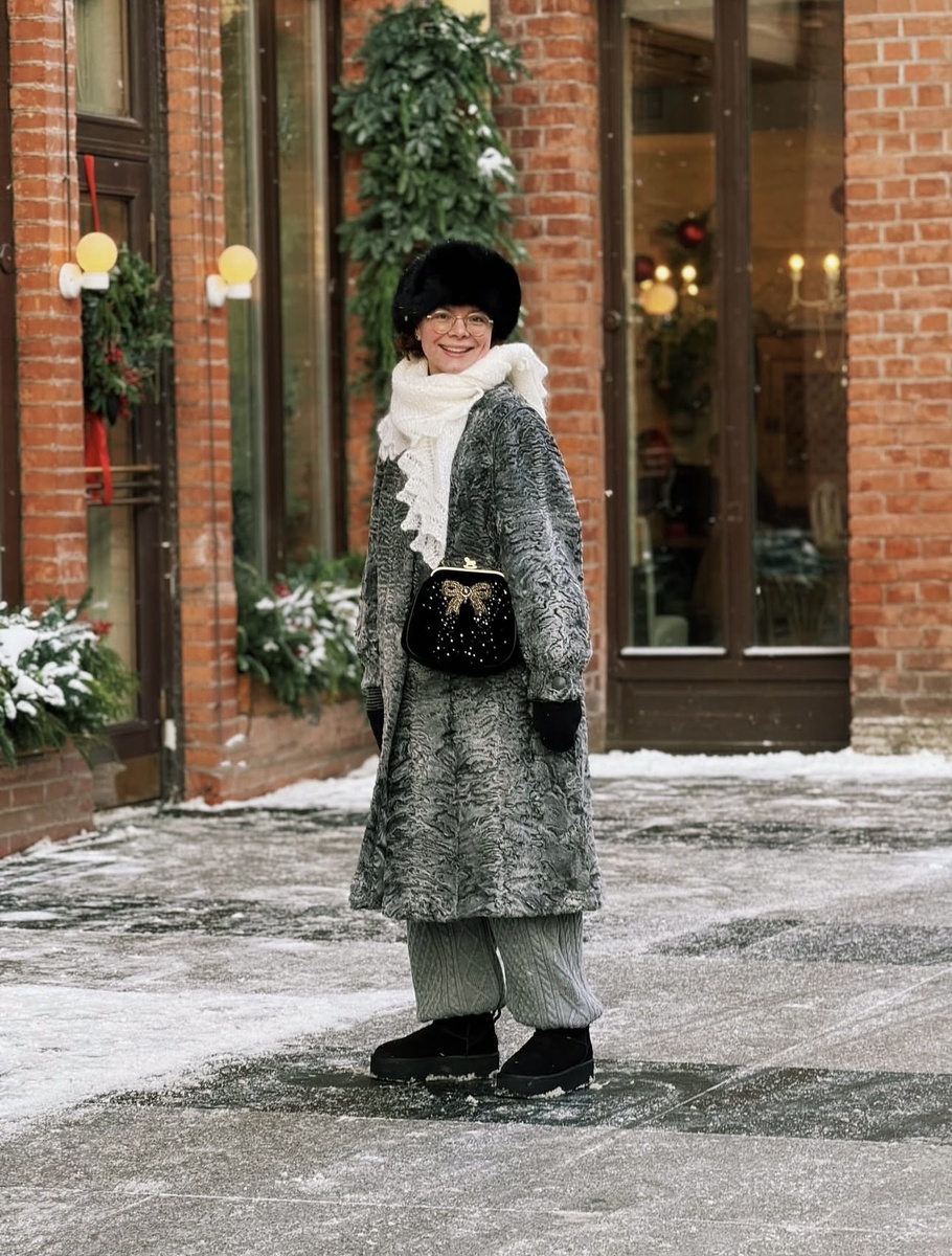В одном образе – каракулевая шуба, меховая шапка и трикотажные брюки. Сочетание "шуба + трикотаж" как раз про реальную жизнь: сверху богато, снизу удобно.На шее – оренбургский платок или объёмный шарф. Очень по-русски, очень тепло, и при этом без ощущения «сто шуб надела». На ногах – угги на толстой подошве, которые уже прописались в гардеробе у неё и у других модниц на всю зиму. Аида Гарифуллина у