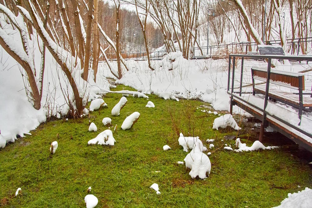 Погулять по зелени без специальной обуви не получится, однако увидеть поляну могут все желающие. В морозную погоду она покрывается инеем, что делает это место не менее красивым.