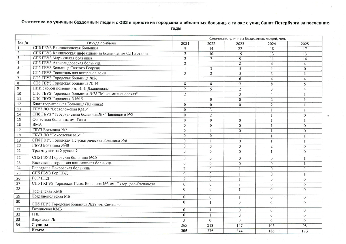 Уличные бездомные люди с ОВЗ - это такие бездомные люди, которые очень похожи на инвалидов, но официально еще не инвалиды, хотя имеют довольно серьезные Ограниченные Возможности Здоровья (ОВЗ). На картинке статистика поступлений в наш приют таких людей за 5 последние лет. Справедливости ради отметим, что с улиц города в приют попадают и практически пока еще здоровые бездомные люди, но