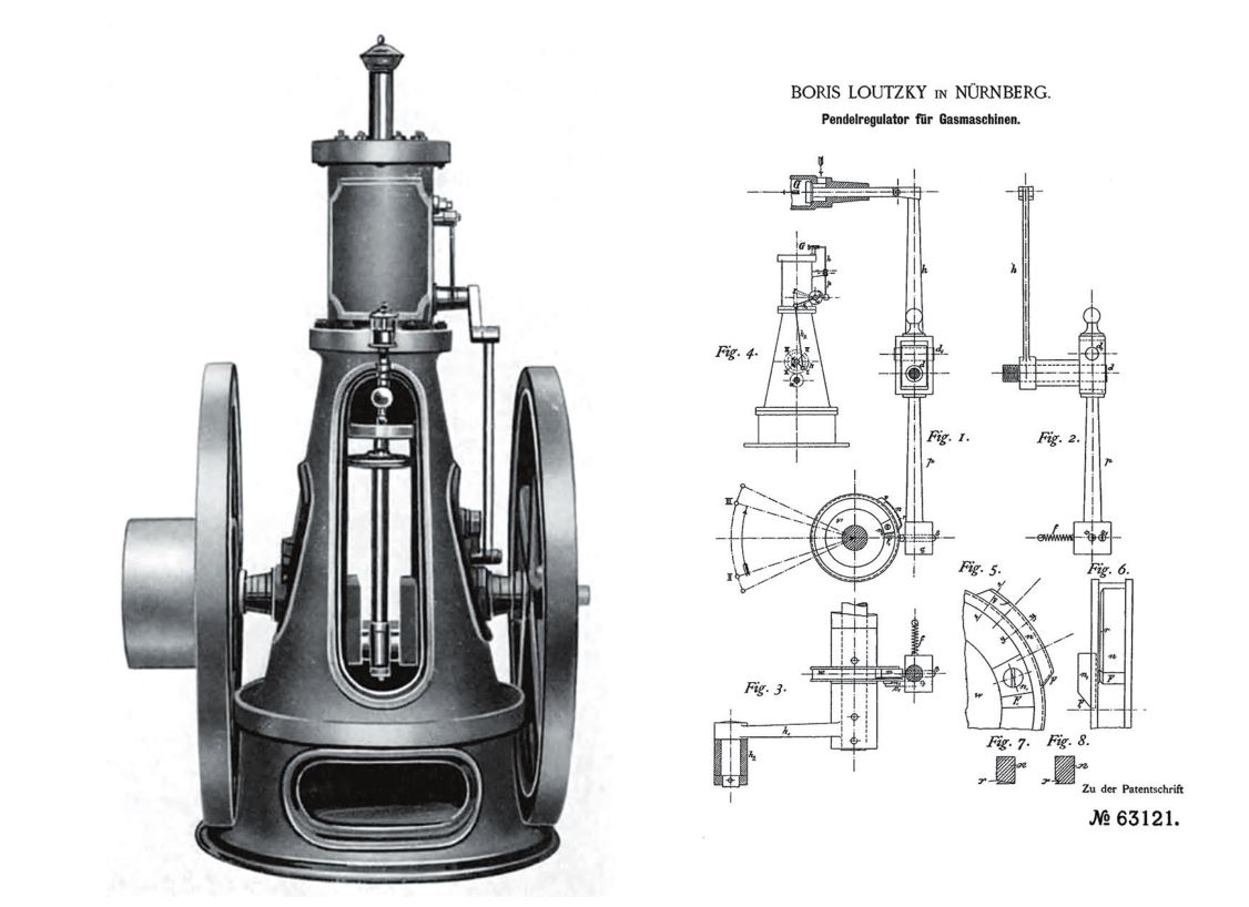 Бензиновый двигатель Б. Луцкого, созданный в 1893г с подвесным "автоматическим" впускным клапаном и механическим приводом выпускного клапана. В этом двигателе Луцкий впервые в мире применил распылитель для впрыска жидкого топлива в камеру сгорания. Это был первый случай в практике двигателестроения, когда испарение жидкого топлива было заменено его мелким распылением.