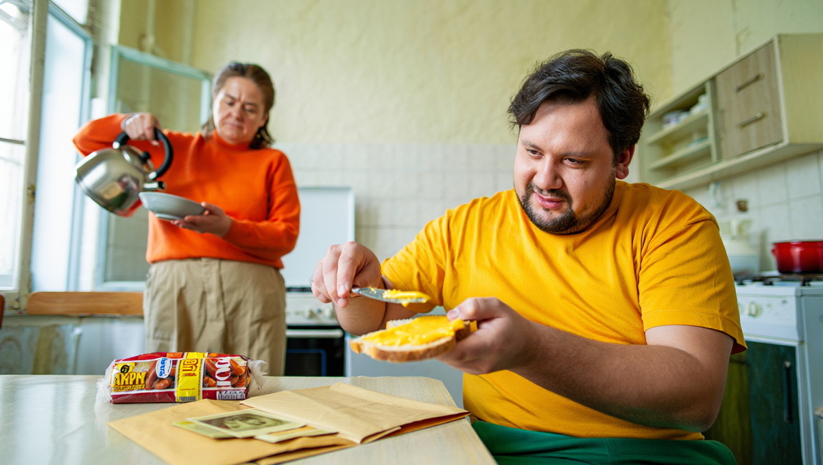 Тем вечером Геннадий сидел на кухне и намазывал плавленый сырок на хлеб — тонко-тонко, чтобы растянуть на три бутерброда. Людмила только вернулась со второй работы и молча ставила чайник. Под глазами у неё залегли тени, плечи ссутулились от усталости.