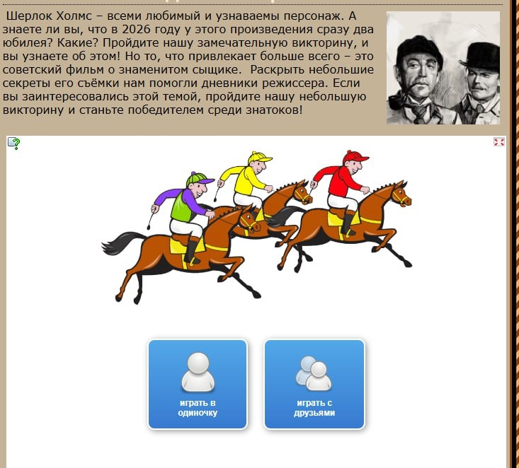 Шерлок Холмс – всеми любимый и узнаваемы персонаж. А знаете ли вы, что в 2026 году у этого произведения сразу два юбилея? Пройдите нашу викторину, и вы узнаете, что привлекает больше всего в советском фильме о знаменитом сыщике. Раскрыть небольшие секреты его съёмки нам помогли дневники режиссера.