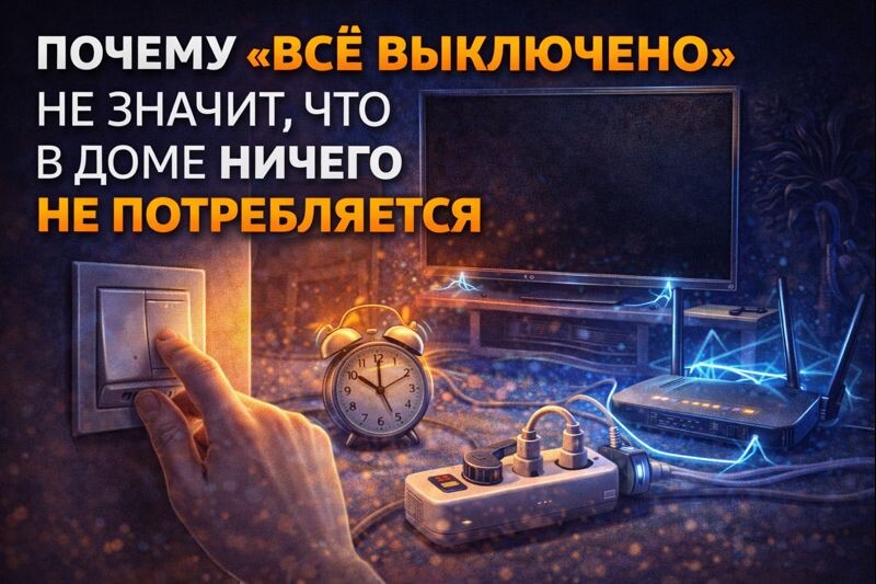 Многие уверены: если свет выключен, техника не работает и в доме тихо — значит, электричество почти не расходуется. Логика кажется очевидной и не вызывает сомнений. Но именно здесь и кроется одна из самых распространённых ошибок, из-за которых деньги продолжают уходить, даже когда кажется, что вы всё контролируете. У большинства людей есть чёткая картина: включили — потребляет, выключили — не потребляет. Мы привыкли ориентироваться на видимые действия: щёлкнули выключателем, нажали кнопку, вытащили вилку у одного прибора — значит, всё в порядке. Проблема в том, что современный дом давно живёт по другим правилам. Даже когда кажется, что всё выключено, в доме остаётся множество источников постоянного потребления. Они работают в фоновом режиме, не привлекая внимания и не создавая ощущения расхода. Это не авария и не поломка. Это просто «нормальный режим», к которому все привыкли. Именно поэтому он опасен. Во-первых, такие расходы не ощущаются физически. Нет шума, запаха, мигания света. Д