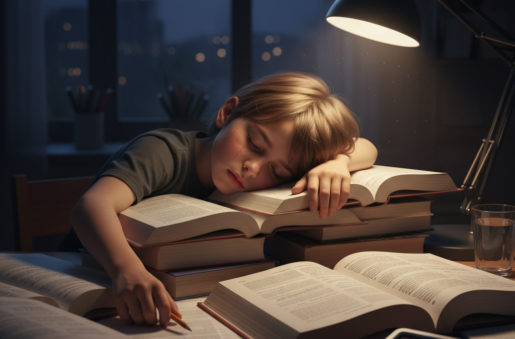 Нарушение сна. Тёма стал засыпать после полуночи, хотя ложился в десять. Просто лежал с открытыми глазами, прокручивая в голове завтрашние контрольные и недоделанные задания. По утрам вставал разбитым, как будто вообще не спал. Это классический признак переутомления у школьников.