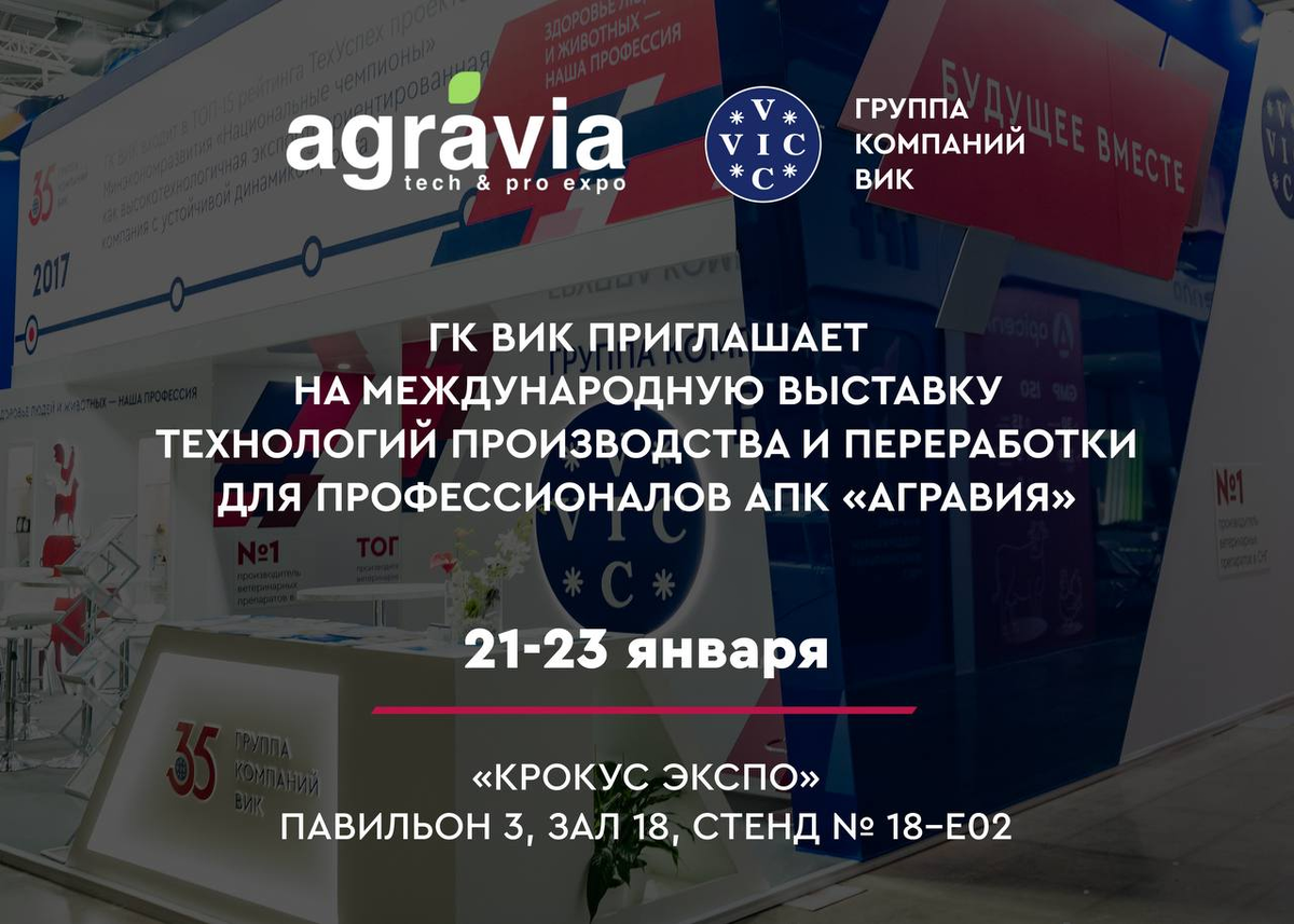 С 21 по 23 января ГК ВИК примет участие в Международной выставке AGRAVIA TECH & PRO EXPO – 2026, которая пройдет в Москве, Крокус Экспо, павильон 3, зал 18 Деловая программа ГК ВИК объединяет стратегию, науку, практику и работу с будущими кадрами отрасли и включает: Экспертный консалтинг — персональные консультации и готовые решения от наших специалистов в области ветеринарии, содержания, биобезопасности и кормления, направленные на повышение продуктивности и экономической эффективности предприятия. До встречи на AGRAVIA TECH & PRO EXPO – 2026!