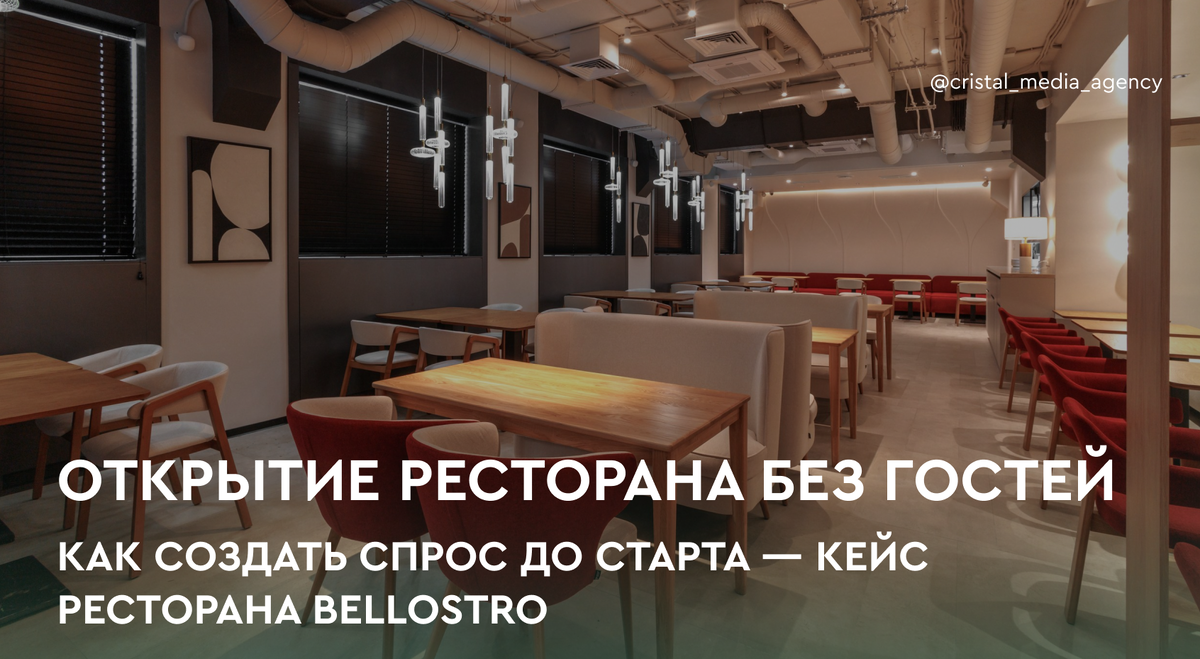 Именно с этой проблемой к нам в Cristal Media обратился ресторан Bellostro. У команды было всё для успеха, кроме одного — уверенности, что в день икс их пространство наполнится теми, для кого оно создавалось. Задача была сформулирована честно и жестко: нужна не красивая айдентика, а система, которая создаст спрос с первого дня.