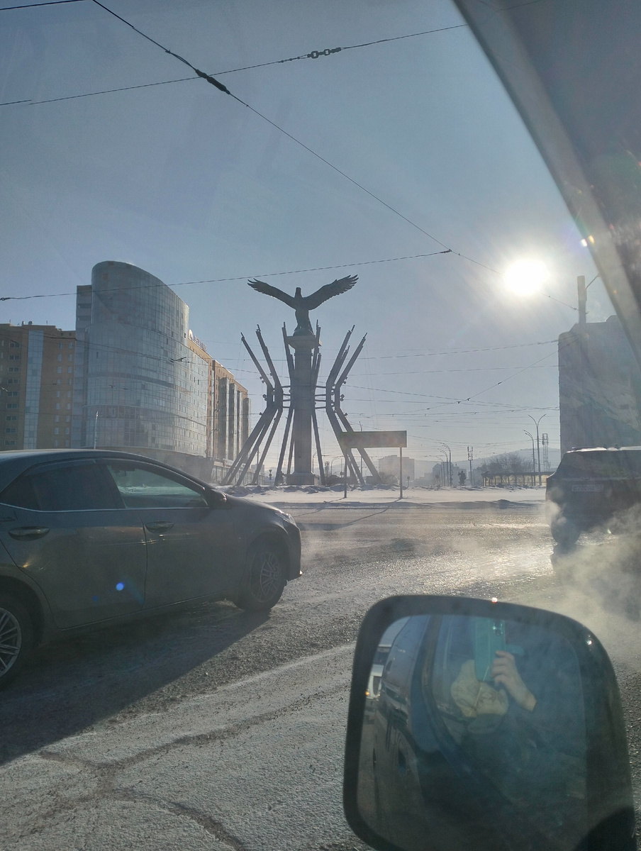 Потом мы с Сашей поехали по его рабочим делам. Над холодным красивым городом сияло окончательно взошедшее суровое зимнее солнце.