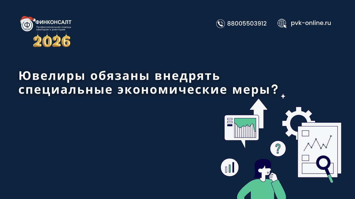 В конце 2025 года на рынке появилось множество утверждений о «новых обязательных требованиях» для субъектов 115-ФЗ. В том числе для ювелирных компаний, поднадзорных Пробирной палате. Мы разобрались в вопросе на уровне закона и получили официальный ответ регулятора. В статье: • что на самом деле регулирует 281-ФЗ • есть ли у ювелиров обязанности по спецэкономическим мерам • когда возникает обязанность по отчётности и когда её нет • почему смешение понятий приводит к ошибочным требованиям Без домыслов, коммерческих интерпретаций и «обязательных документов», которых нет в законе. С прямыми нормами и официальной позицией регулятора. 👉 Читать полностью и посмотреть официальный ответ надзорного органа: https://clck.ru/3RLa4j Финконсалт. Мы показываем, где закон — а где начинается фантазия. Бесплатная консультация https://clck.ru/3RLccC