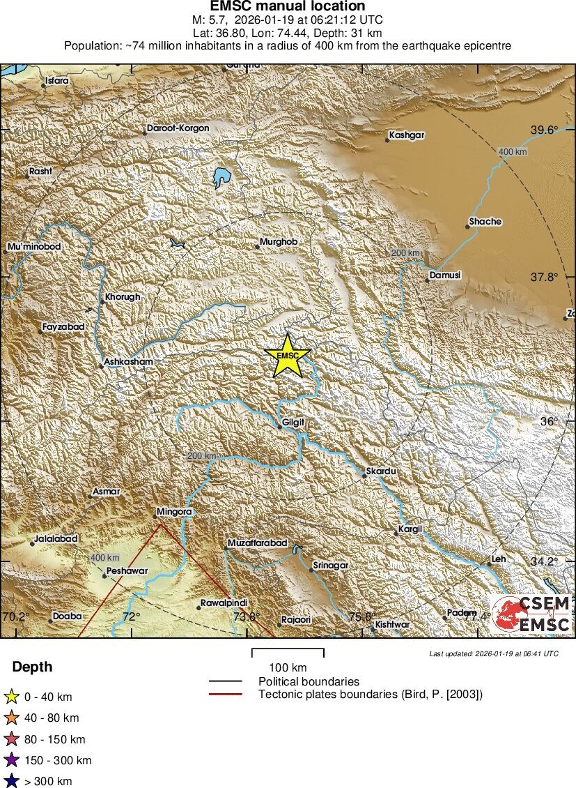 Согласно вчерашнему предупреждению Пакистан отработал умеренным событием М5.7. Наблюдаем далее, энергия сброшена не полностью.
