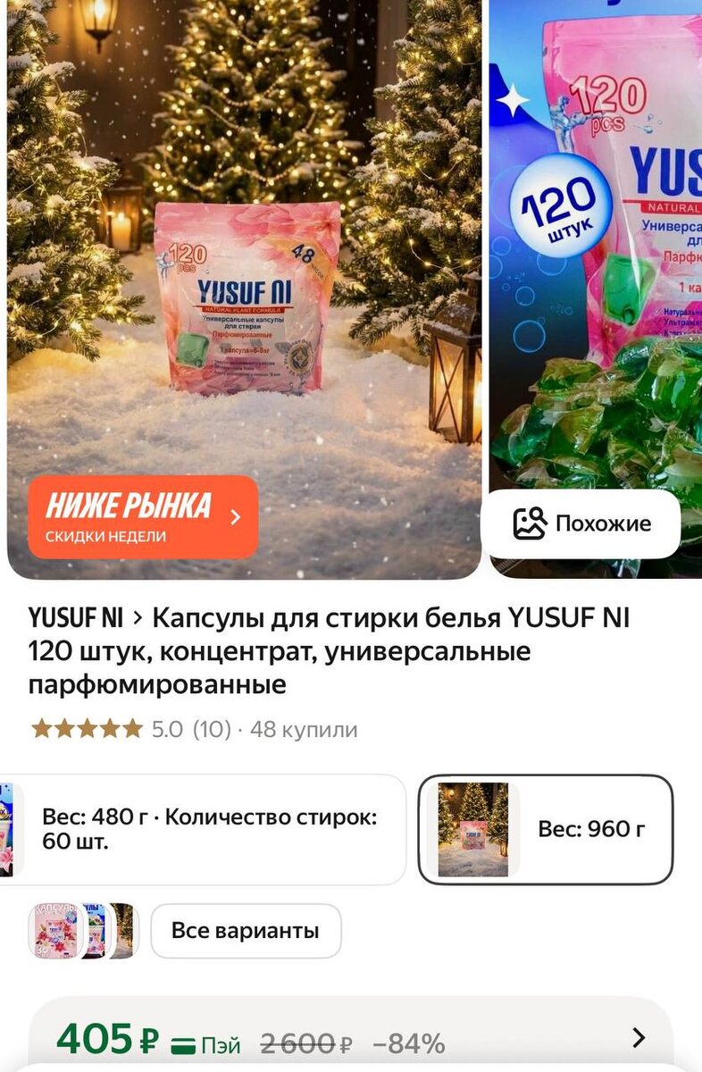 🫨😀😲Капсулы для стирки белья YUSUF NI 120 штук, концентрат, универсальные парфюмированные