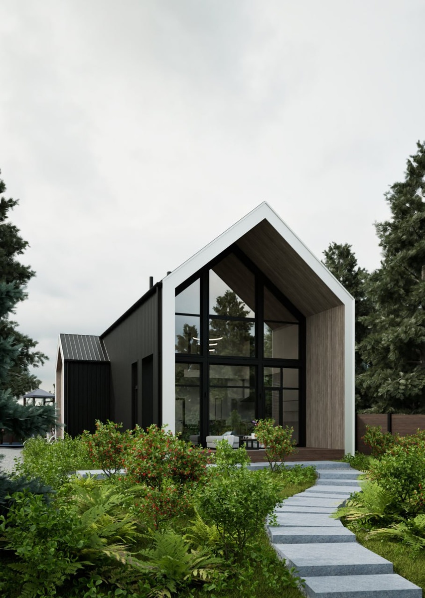СМС-96 | Общая площадь: 113 м² | Полезная площадь: 97 м² Сердце дома - большая кухня-гостиная с панорамными окнами. За счёт естественного света и высокого потолка она выглядит ещё просторнее и уютнее. Спальню на первом этаже можно использовать как гостевую. Удобно, что она отделена от спален на втором этаже, ночью хозяева и гости не пересекаются. На втором этаже - две спальни и санузел, это делает этаж автономным и ночью не нужно спускаться вниз. Отсутствие межэтажного перекрытия создаёт ощущение воздуха и простора, наполняет дом светом и визуально объединяет оба этажа. Этот дом спроектирован так, что с любой его точки открывается шикарный вид, вы всегда видите красивые интерьерные решения. Подробнее о проекте, сроках и стоимости строительства - на нашем сайте.