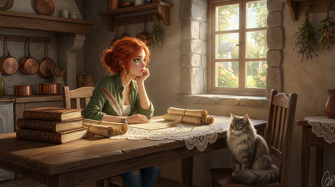 «Это ты принимаешь обычную кошачью лень за благородство», - возразил он, но кончик его хвоста довольного подрагивал. - «Но спасибо за попытку меня возвысить. Однако, вернемся к нашему обращающему в камень другу. Ладан, петухи, чистый дух... Все это звучит как рецепт не очень удачного пикника».