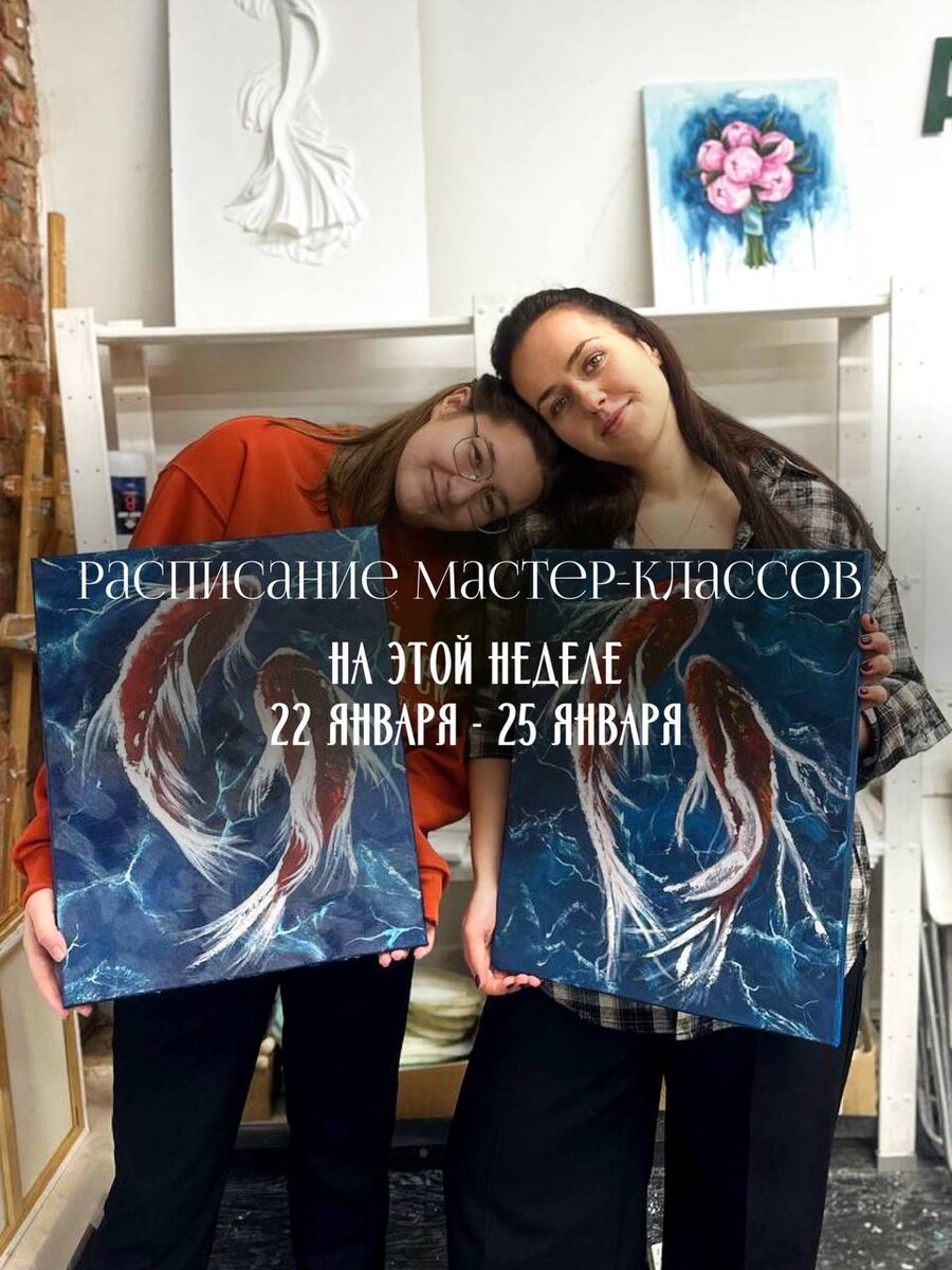 22 января - 25 января 4 дня и 4 разные техники 4 разных материала И более 300 разных картин Море шампанского 🥂 и лавина эмоций от создания своей первой картины Выбирай свою технику и пиши нам в чат 💭 для записи