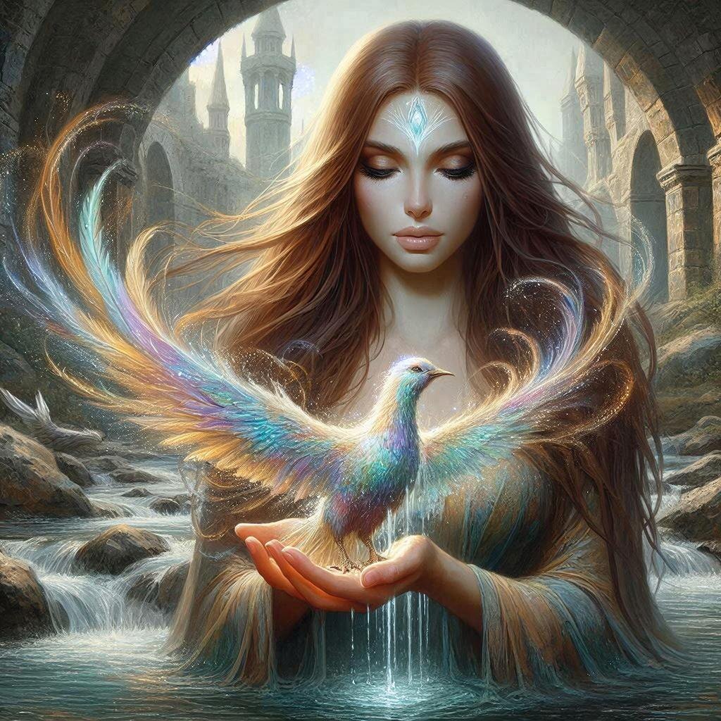 Среди творцов была Аэлис. Высокая, с волосами цвета темного янтаря и глазами, похожими на две глубокие озера, она отвечала за создание птиц. На ее лбу сиял кристалл Илленара — прозрачный камень, усиливающий мысль и превращающий воображение в материю.